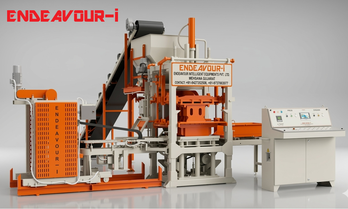 Automatic Hydraulic Vibro Compacting Cement Bricks & Concrete Blocks Making Machine Multi Product Machine to Produce Fly Ash Bricks, Cement Bricks, Concrete Solid Blocks, Concrete Hollow Blocks, Concrete Paver Blocks, Concrete Paver Blocks with Color Face etc… Featured With Advanced High Speed Variable Speed Synchronized Vibration System, This Machine Is Capable To Produce Best Quality Cement Bricks & Blocks. Model: ENDEAVOUR-iC1800 Production Capacity: 8 Bricks per Stroke / 1200-1800 Bricks per Hour Standard Bricks Size: 230 X 110 X 75 mm (Size Options Available) Vibration: Oil Filled Box Type High Speed Vibration Controlled by VFD Pan Mixer Capacity: 600 Kgs per Batch – 1 Mixer Hydraulic Tank Capacity: 250 Ltrs Control Panel: User Friendly PLC Based Control Panel with Touch Screen Display Pallet Size: 570 X 570 X 19 mm Connected Power: 26 HP / 19.5 KW / 3 Phase / 440 Volts / 50 Htz ENDEAVOUR-i Automatic Fly Ash Bricks & Concrete Blocks making Equipments are available in wide range of Production Capacity & Prices. Please Contact for More Details: ENDEAVOUR INTELLIGENT EQUIPMENTS Pvt. Ltd. Survey No: 1206, At: Motap, Ta: Becharaji, Dist: Mehsana Modhera Road, Mehsana-384410, Gujarat INDIA Contact: +91-9427352508 +91-9737663977 E Mail: endeavourintelligent@gmail.com Website: www.endeavour-i.com YouTube Channel: https://www.youtube.com/@endeavourintelligentequipm583 ENDEAVOUR-i Offers Best Quality Fly Ash Brick Plant, Fly Ash Brick Machine, Fly Ash Brick Making Plant, Fly Ash Brick Making Machine, Automatic Fly Ash Brick Plant, Automatic Fly Ash Brick Machine, Automatic Fly Ash Brick Making Plant, Automatic Fly Ash Brick Making Machine, Fly Ash Bricks Plant, Fly Ash Bricks Machine, Fly Ash Bricks Making Plant, Fly Ash Bricks Making Machine, Automatic Fly Ash Bricks Plant, Automatic Fly Ash Bricks Machine, Automatic Fly Ash Bricks Making Plant, Automatic Fly Ash Bricks Making Machine, Concrete Block Plant, Concrete Block Machine, Concrete Block Making Plant, Concrete Block Making Machine, Automatic Concrete Block Plant, Automatic Concrete Block Machine, Automatic Concrete Block Making Plant, Automatic Concrete Block Making Machine, Concrete Blocks Plant, Concrete Blocks Machine, Concrete Blocks Making Plant, Concrete Blocks Making Machine, Automatic Concrete Blocks Plant, Automatic Concrete Blocks Machine, Automatic Concrete Blocks Making Plant, Automatic Concrete Blocks Making Machine, Fly Ash Brick Industry, Fly Ash Brick Manufacturing Unit, Fly Ash Bricks Industry, Ash Bricks Manufacturing Unit, Fly Ash Bricks Project Report, Fly Ash Bricks Making Process, Cement Brick Plant, Cement Brick Machine, Cement Brick Making Plant, Cement Brick Making Machine, Automatic Cement Brick Plant, Automatic Cement Brick Machine, Automatic Cement Brick Making Plant, Automatic Cement Brick Making Machine, Cement Bricks Plant, Cement Bricks Machine, Cement Bricks Making Plant, Cement Bricks Making Machine, Automatic Cement Bricks Plant, Automatic Cement Bricks Machine, Automatic Cement Bricks Making Plant, Automatic Cement Bricks Making Machine, Cement Block Plant, Cement Block Machine , Cement Block Making Plant, Cement Block Making Machine, Automatic Cement Block Plant, Automatic Cement Block Machine, Automatic Cement Block Making Plant, Automatic Cement Block Making Machine, Cement Brick Industry, Cement Brick Manufacturing Unit, Cement Bricks Project Report, Cement Bricks Making Process