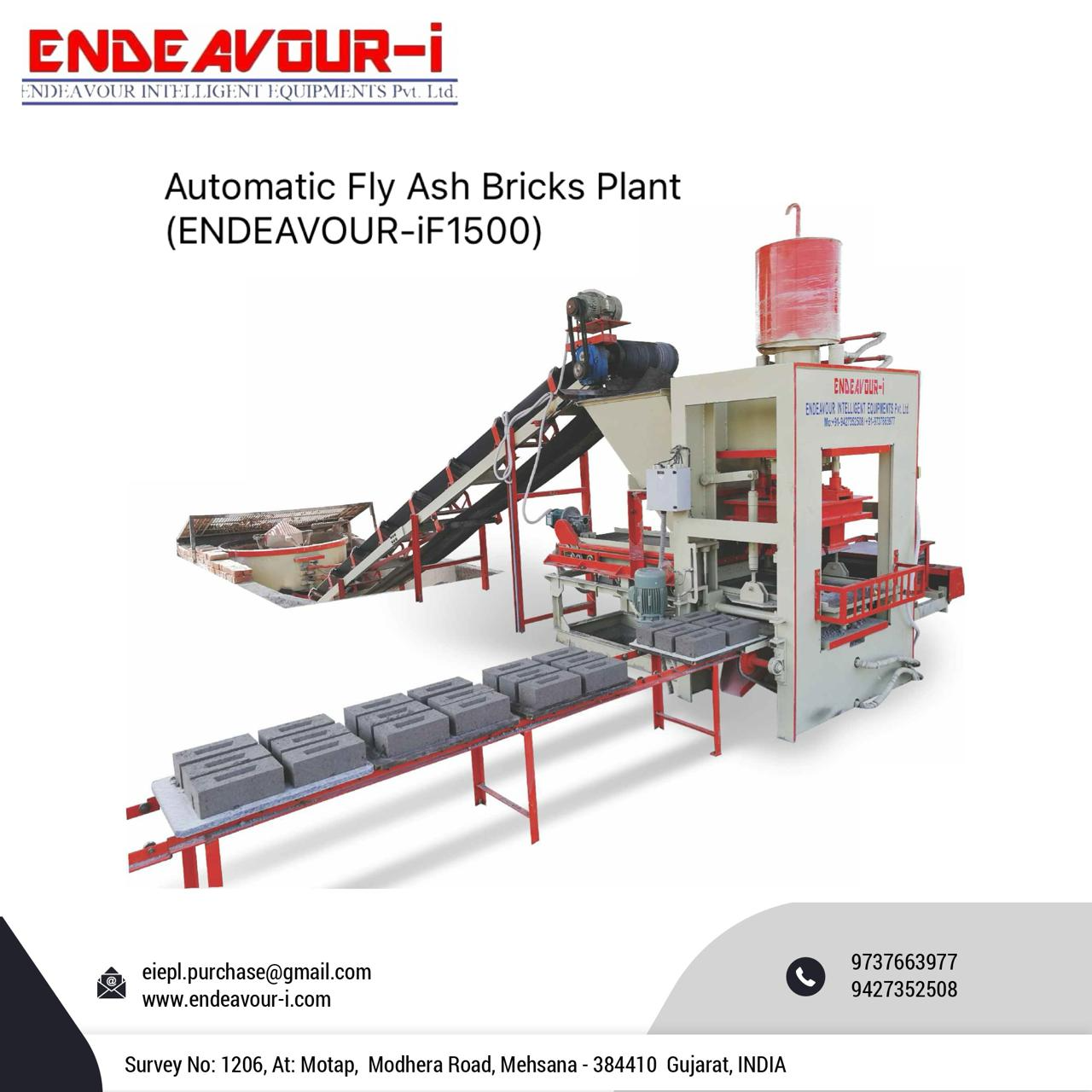 Fly Ash Brick Machine Fly Ash Brick Plant Fly Ash Bricks Machine Fly Ash Bricks Plant Automatic Fly Ash Brick Machine Automatic Fly Ash Brick Plant Automatic Fly Ash Bricks Machine Automatic Fly Ash Bricks Plant Model: ENDEAVOUR-iF1500 Production Capacity: 6 Bricks per Stroke / 1300-1500 Bricks per Hour Standard Bricks Size: 230 X 110 X 75 mm Pressing Capacity: 60 TonsMax. Pan Mixer Capacity: 600 Kgs per Batch – 1 Mixer Hydraulic Tank Capacity: 250 Ltrs Control Panel: User Friendly PLC Based Control Panel with Touch Screen HMI Display Pallet Size: 570 X 430 X 19 mm Connected Power: 22.00 HP/16.5 KW / 3 Phase / 440 Volts / 50 Htz Details & Specifications are subjected to change without Prior Notice.